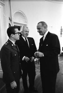 Η φωτογραφία με τον 19χρονο γιο του, Τζον, έχοντας μόλις καταταχτεί και τον πρόεδρο Λίντον Τζόνσον, στοίχειωσε το παγκόσμιο αντιπολεμικό κίνημα και προκάλεσε την αποστροφή των παλιών του θαυμαστών.